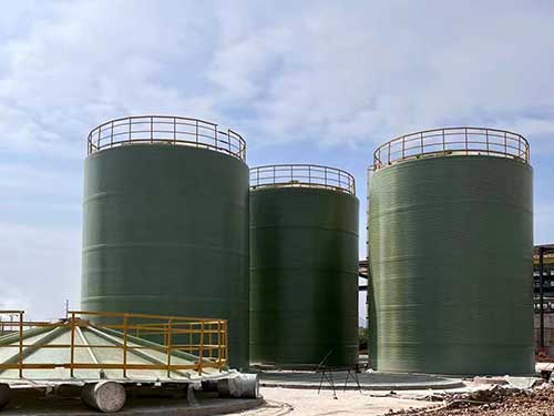 大型現場玻璃鋼儲罐介紹 大型現場玻璃鋼儲罐以熱固性樹脂為基體材料,玻璃纖維為增強材料,采用連續纖維進行螺旋纏繞,工藝先進,結構合理。具備一般玻璃鋼儲罐的輕質高強、耐化學腐...